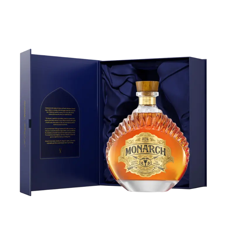 The Legacy Edition is a premium brandy, meticulously crafted to give brandy lovers a taste of Franco-Indian viticulture. Each sip is meant to be savoured, a toast to timeless indulgence, offering a royal glimpse into exquisite craftsmanship that blends matured Indian grapes from the Sahyadri Hills with fine French grape spirits from the Cognac region.